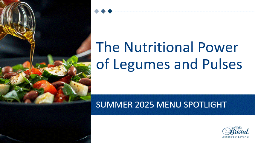 This summer’s legume-forward approach is just one example of how we blend flavor, nutrition, care, and preference – ensuring that every bite supports a vibrant and full life. At The Bristal, we know mealtime is about more than food. It’s how we make connections, how we feel confident, and how we feel at home.