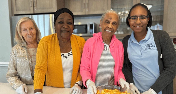 North Woodmere residents really love collaborating in the kitchen! In the images, they can be seen making apple pie bites for another afternoon social. The social connections and camaraderie fostered through the cooking clubs and kitchen activities at The Bristal at North Woodmere really shine brightly.