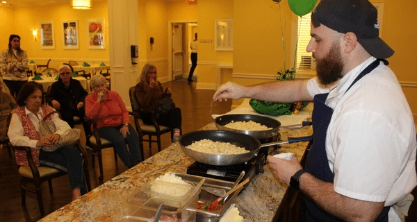 The Bristal at Lake Success welcomed local Long Island chef, Brian Demmett. Chef Demmett demonstrated how to cook Corned Beef Hash in honor of St. Patrick’s Day. Chef Demmett’s culinary career is impressive and includes serving as a sous chef in a well-established restaurant in Manhattan, as well as working as a private chef. Everyone enjoyed his demonstration and sampling the dish. Several residents commented that his Corned Beef Hash reminded them of home. Thank you Chef Demmett for the demonstration and the delicious meal!