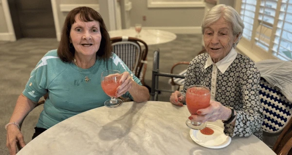 At a vibrant spring happy hour, residents enjoyed refreshing, alcohol-free Piña Coladas, savory dumplings, and a lively afternoon of disco dancing.