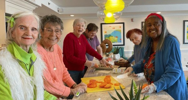 The Culinary Club at The Bristal at Westbury is a popular weekly gathering where residents come together to share their love of cooking. Recently, the group prepared a delicious caprese salad, enjoying the process of preparing and sharing fresh, flavorful dishes.